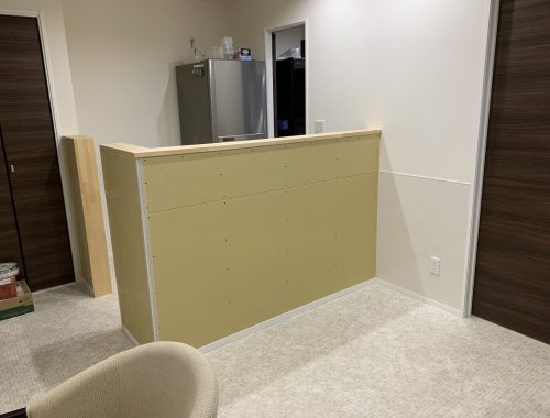 本日は大工さんに来ていただき、キッチン周りのカウンターを作っていただきました。…